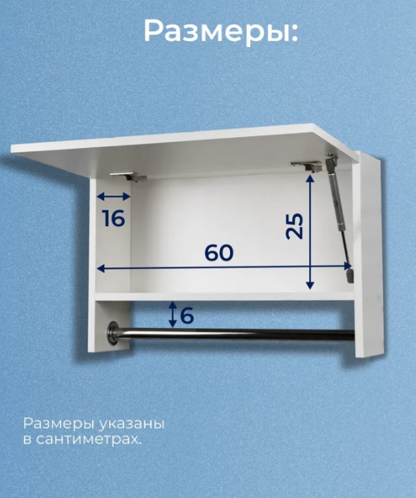 Скрытые навесы , труба хром для полотенца 25мм, газлифт для фасада, расстояние внутри шкафа ширина 600мм*глубина 160мм*высота 250мм
