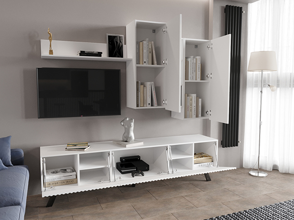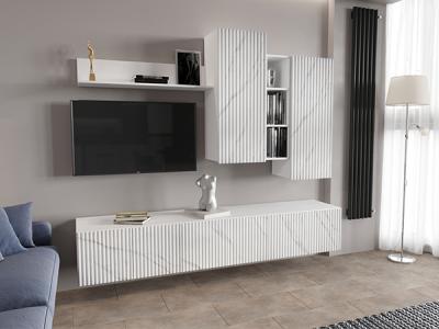 Это отличный выбор для интерьера вашей комнаты. Компактный размер и многофункциональное наполнение позволяют расходовать пространство гостиной максимально эффективно. Фасады выполнены из МДФ с фрезеровкой.
