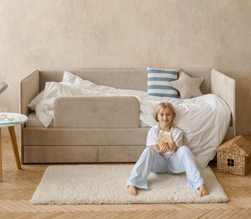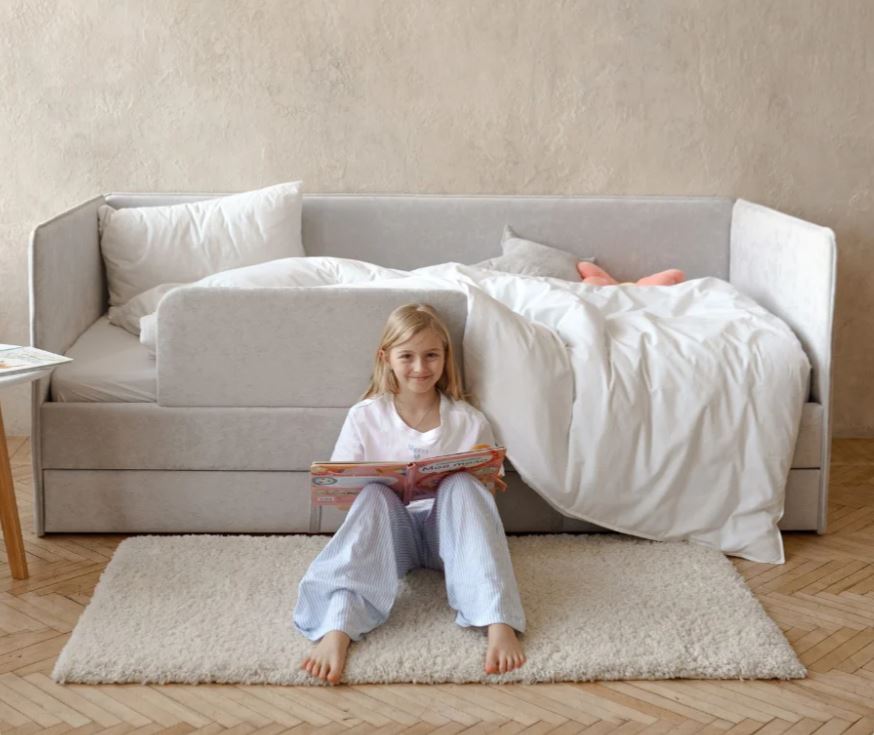 В комплекте идет 2 вида спинок (в ногах ребенка)- высокая (как на фото) и низкая( примерно в уровень с матрасом) на вырост ребенку. При подрастании ребенка спинку можно поменять.