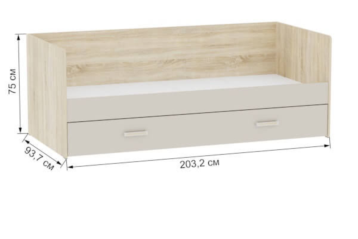 Спальное место:2000 х 900 мм. Выкатное: 1960 х 800 мм.