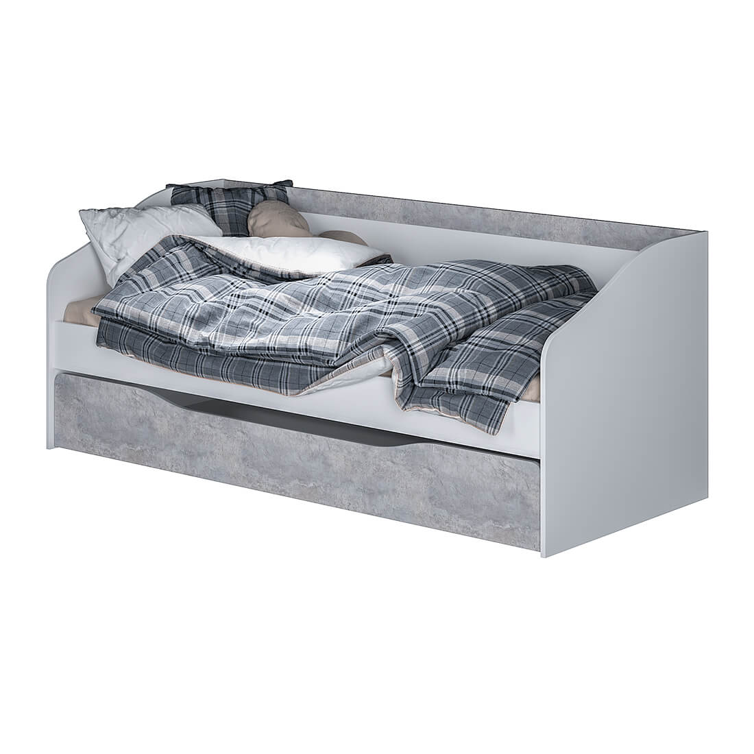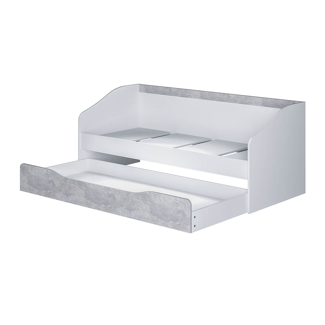 выдвижной ящик можно использовать как второе спальное место 1860*800 мм; выдвигается на роликовых опорах, установленных на дне кровати.