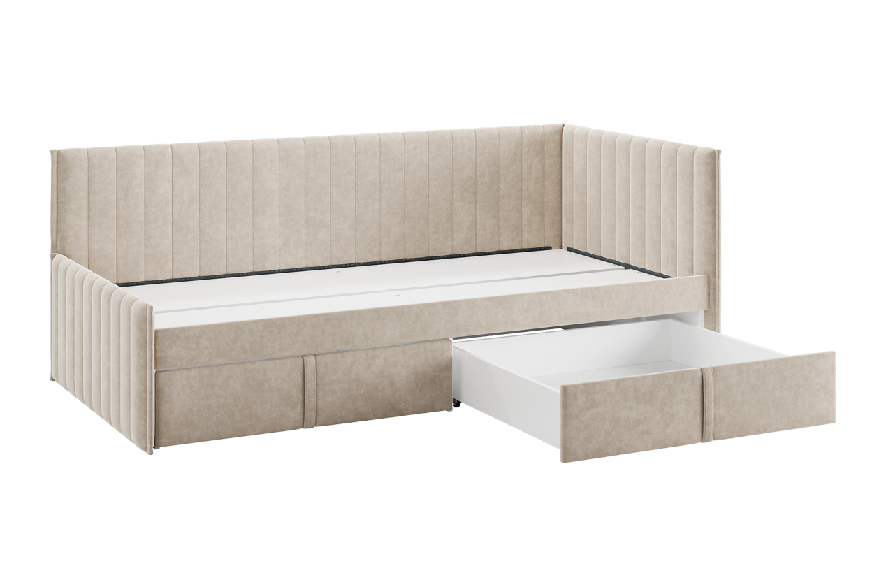 Вместительные выкатные ящики предоставляют дополнительные возможности для хранения постельного белья, одежды или других важных вещей, что особенно актуально для небольших помещений. Настил из ЛДСП гарантирует удобство и надежность использования.