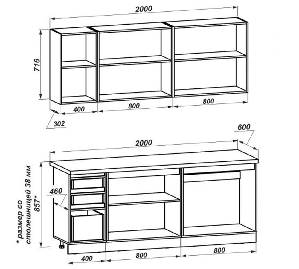 Столешница: 38 мм цельная 2000 Гранит Белый, Дуб Классический.