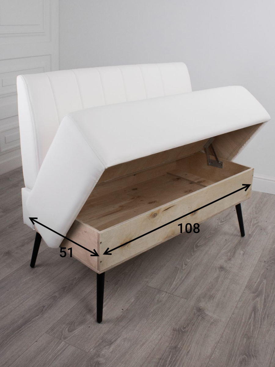 Мягкий диванчик "Рундук" с ящиком для хранения хорошо подойдёт для общественных помещений: кафе, ресторанов, салонов красоты, фотостудии, зоны ожидания, а также будет отлично смотреться на кухне или в прихожей. Компактный без подлокотников, с мягкой и практичной обивкой Экокожа, премиум класса с высокой износостойкостью. Идеальный выбор для тех, кто ценит стиль, удобство и экологичность. Габариты: длинна 114 см, глубина посадки 44 см, высота спинки 42 см, высота посадки 48 см, высота ножки 23 см, короб: 51* 108 см. Каркас сиденья выполнен из березовой фанеры толщиной 18 мм, спинка из березовой фанеры 12 мм. Наполнитель - эластичный пенополиуретан средней жесткости плотностью 25 кг/м3 предназначенный для изделий с нагрузкой до 160 кг, не деформируется даже после длительного пользования и принимает первоначальную форму. Обивка из Экокожи выглядит и ощущается как натуральная кожа, но при этом она более прочная, легче в уходе и более доступная по цене. Такая мебель подойдет как для современных интерьеров, так и для классических. Она идеально подойдет для семей с детьми и домашними животными, так как легко моется и не боится царапин является гипоалергенным, экологически чистым материалом. Металлические ножки выполнены с пластиковыми заглушками которые обеспечивают защиту напольному покрытию (ламинату, паркету или линолеуму). Диван "Рундук" очень легко собирается, среднее время сборки около 10 минут.