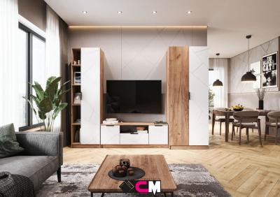 Фасад МДФ БЕЛЫЙ СУПЕРМАТ/Корпус ДУБ КРАФТ ТАБАЧНЫЙ