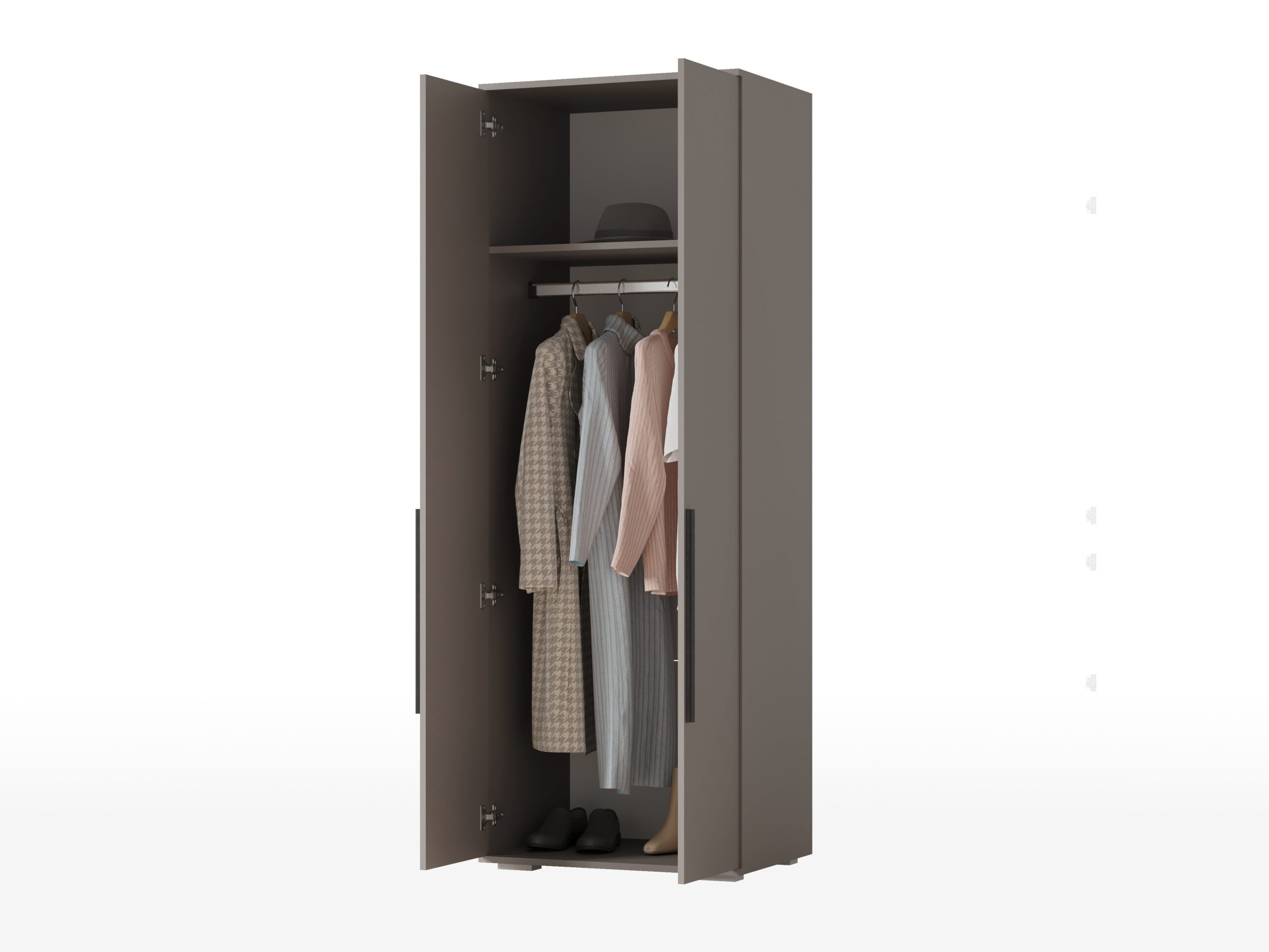 Шкаф для одежды со штангой позаботиться о вещах, в тумбе удобно разместить книги, в шкафу-пенале одежду на полках, а на открытых полках — предметы интерьера или любимые фотографии.