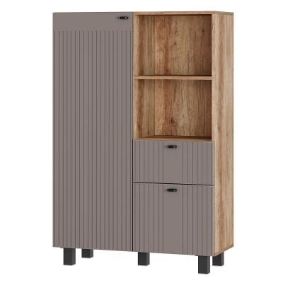 Модель состоит из шести вместительных полок для хранения. На двух открытых полках можно разместить вазы, сувениры или красивую посуду. Удобный ящик с эргономичной ручкой подойдёт для мелочей.