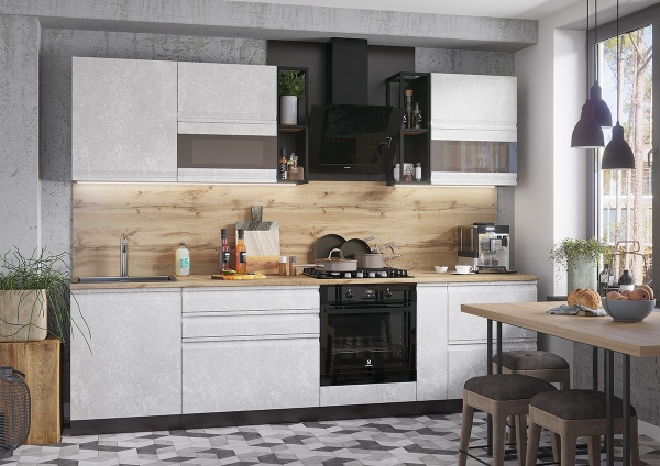 В цену кухонного комплекта не включены: раковина, посудосушитель, столешница