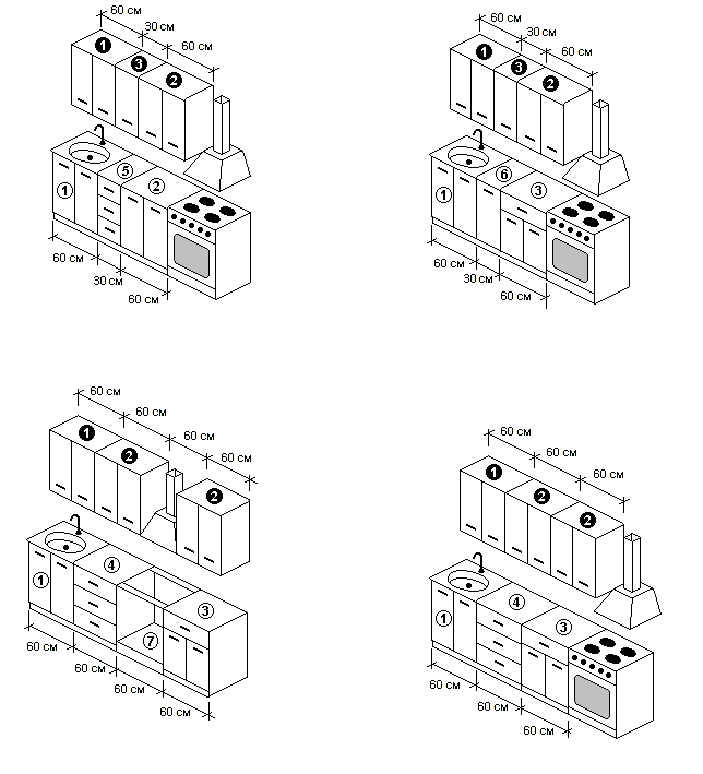 Размер верхних шкафов: высота 700мм, глубина 315мм