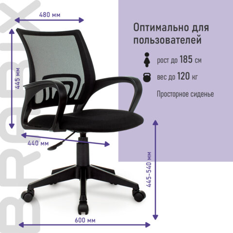 BRABIX "Fly MG-396" – доступное, качественное кресло с эргономичной сетчатой спинкой. Прекрасный вариант для повседневной работы в офисе и дома.