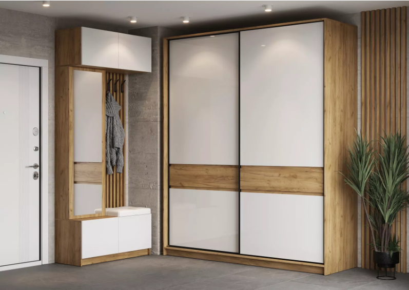 Габаритные размеры: Ш.2002 х В.2360 х Г.634 мм.БОСТОН Шкаф-купе ШК-005 вместительная система хранения, которая включает в себя: полки, ящики и горизонтальные штанги.