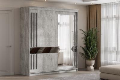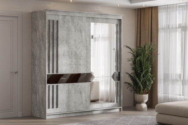 Цвет (корпус / фасад): Грей Цемент Светлый. Декор створок: Графит / Железная руда + Зеркало
