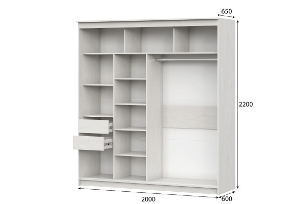 Наполнение: ящики, полки, штанга горизонтальная.