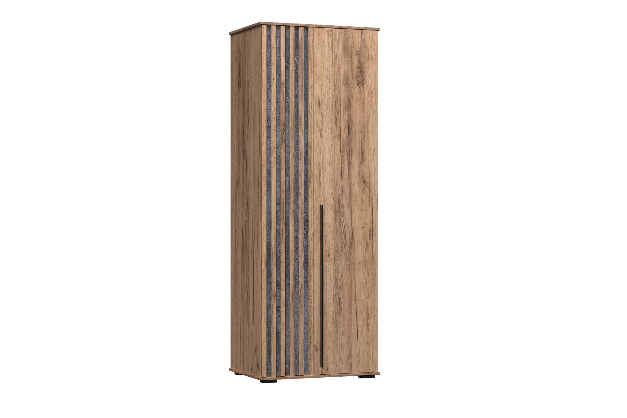 Двустворчатый шкаф с современными элементами декора в виде реек на фасаде.