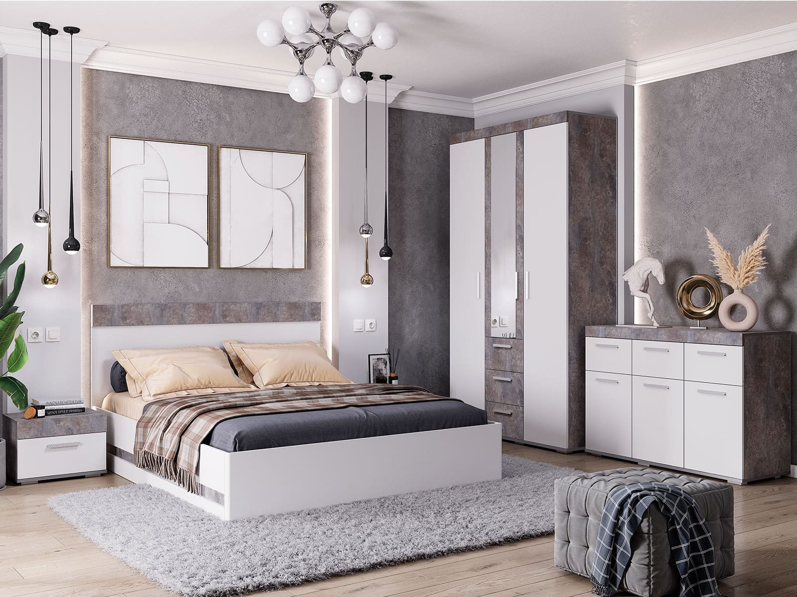 Модульная коллекция "Инстайл" помогает создать неординарный дизайн. Приглушенные тона интерьера нарочито небрежно подчёркивают текстуру бетона, а нейтральный белый цвет и обилие аксессуаров наполняют Ваш дом уютом.