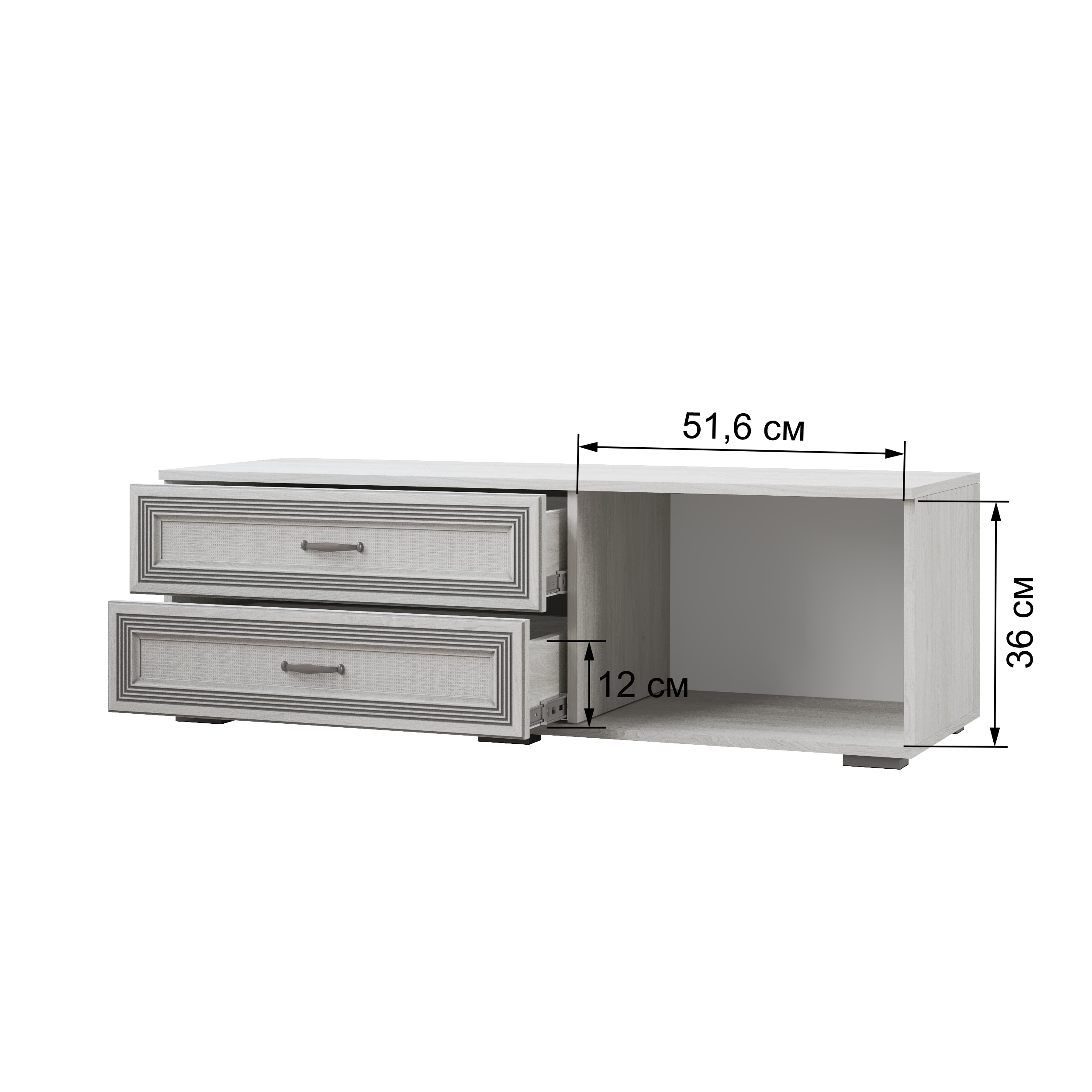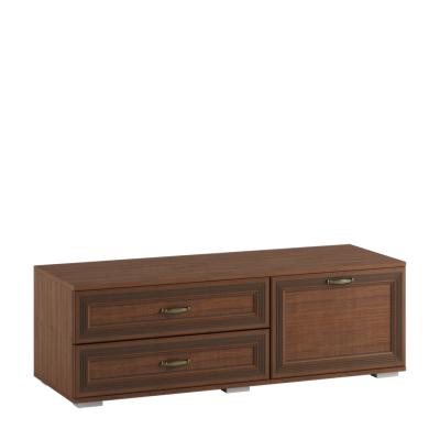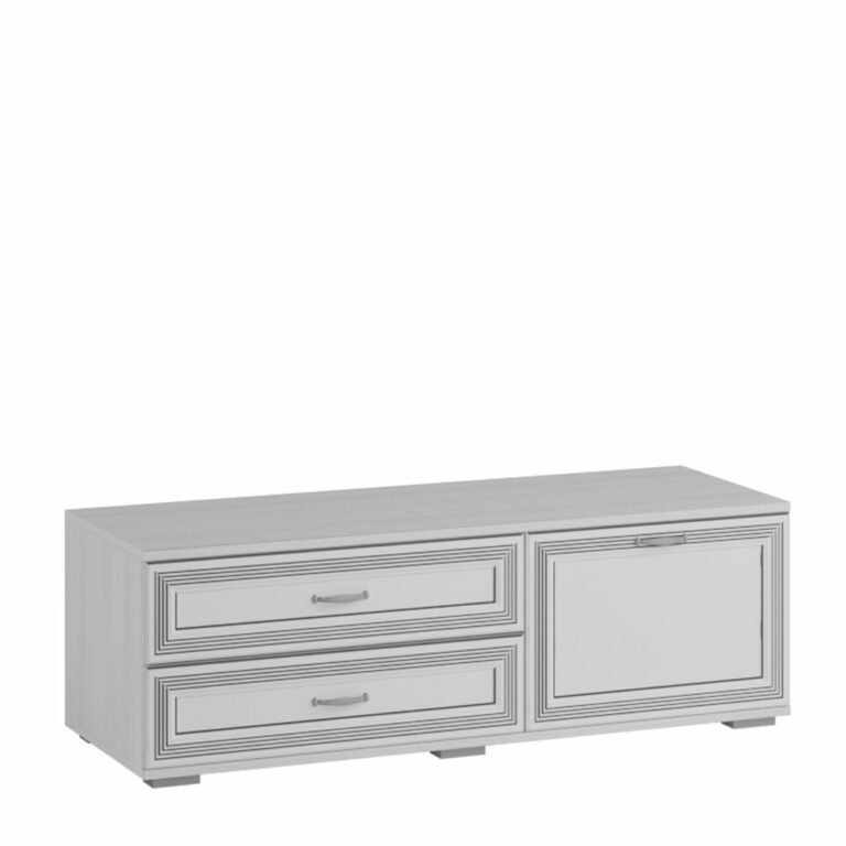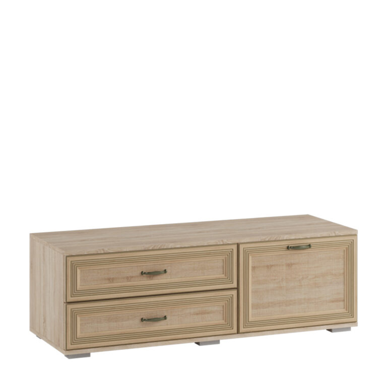Тумба для ТВ-техники - функциональный модуль, который можно использовать не только для хранения аудио- и видеоаппаратуры, но и для размещения телевизора. Удачное сочетание выдвижных ящиков и глухого, открывающего вниз фасада делают тумбу универсальной.