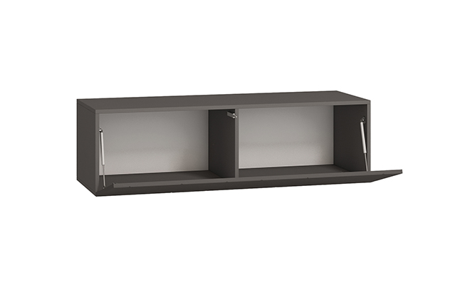 Особенностью гостиной является возможность сделать тумбу навесной (крепится к стене на навесы), либо поставить на опоры, которые приобретаются за дополнительную сумму.