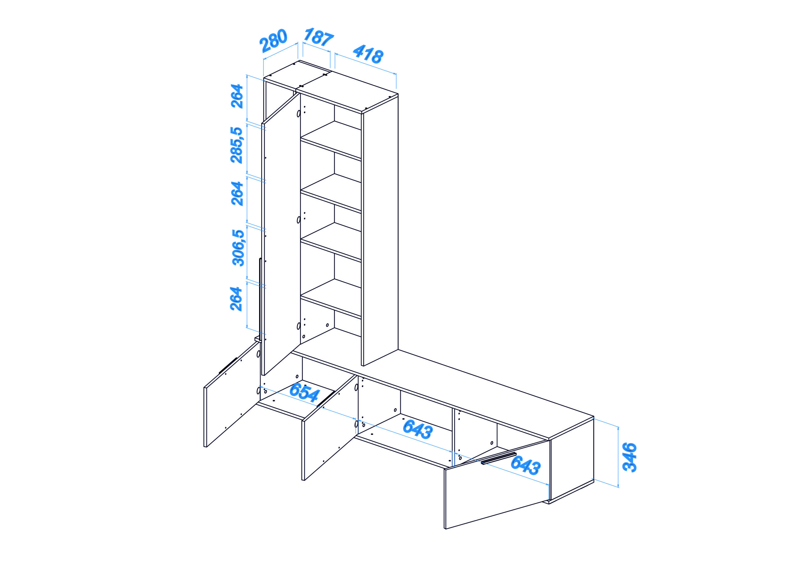 Модульная гостиная Селеста в минималистичном дизайне и спокойных цветах универсально впишется в дизайн любой гостиной. В гостиной предусмотрено множество мест для хранения вещей, предметов интерьера и одежды.