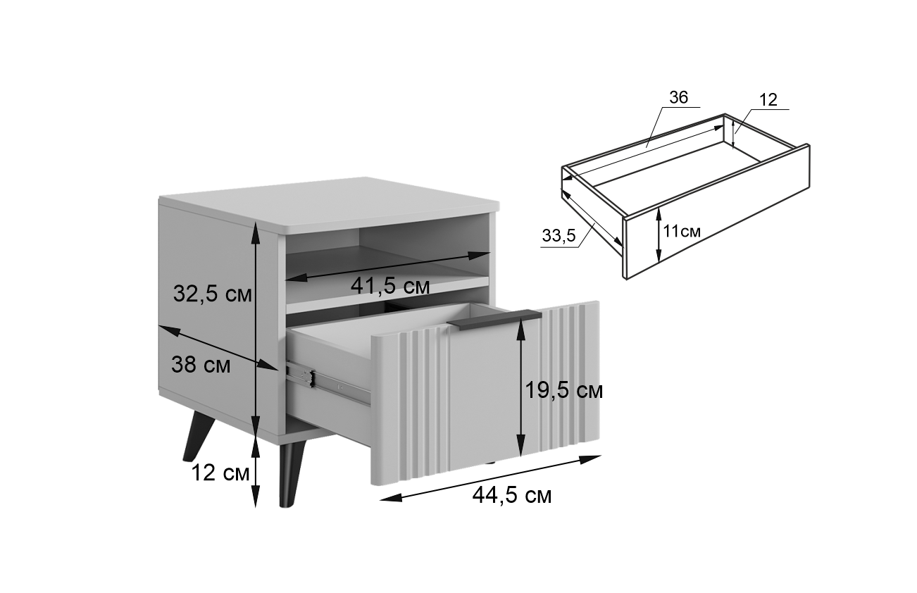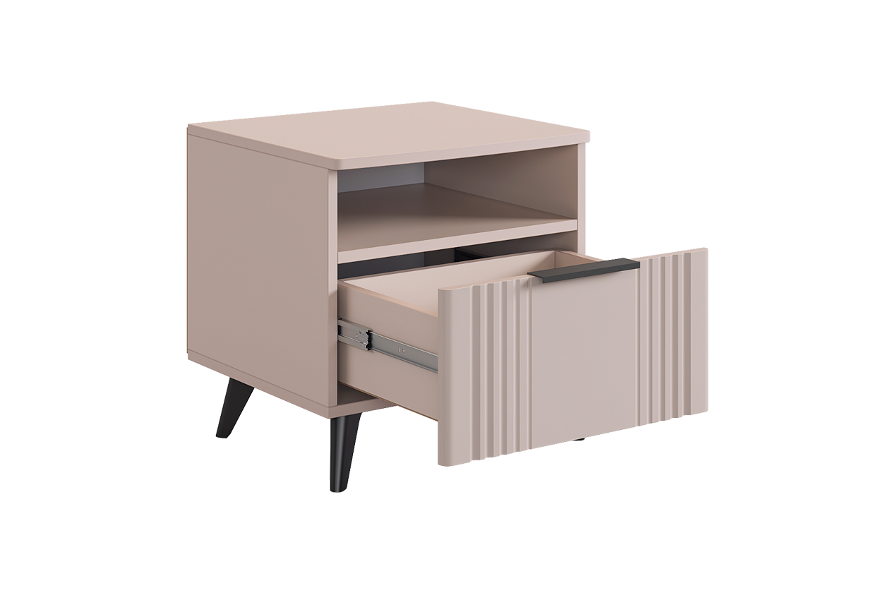 Благодаря компактным размерам тумба легко впишется в любой интерьер и гармонично сочетается с другими модулями спальни «Катрин». Выкатной ящик на шариковых направляющих обеспечивает удобный доступ к вещам, а нерегулируемые пластиковые опоры гарантируют стабильность конструкции.