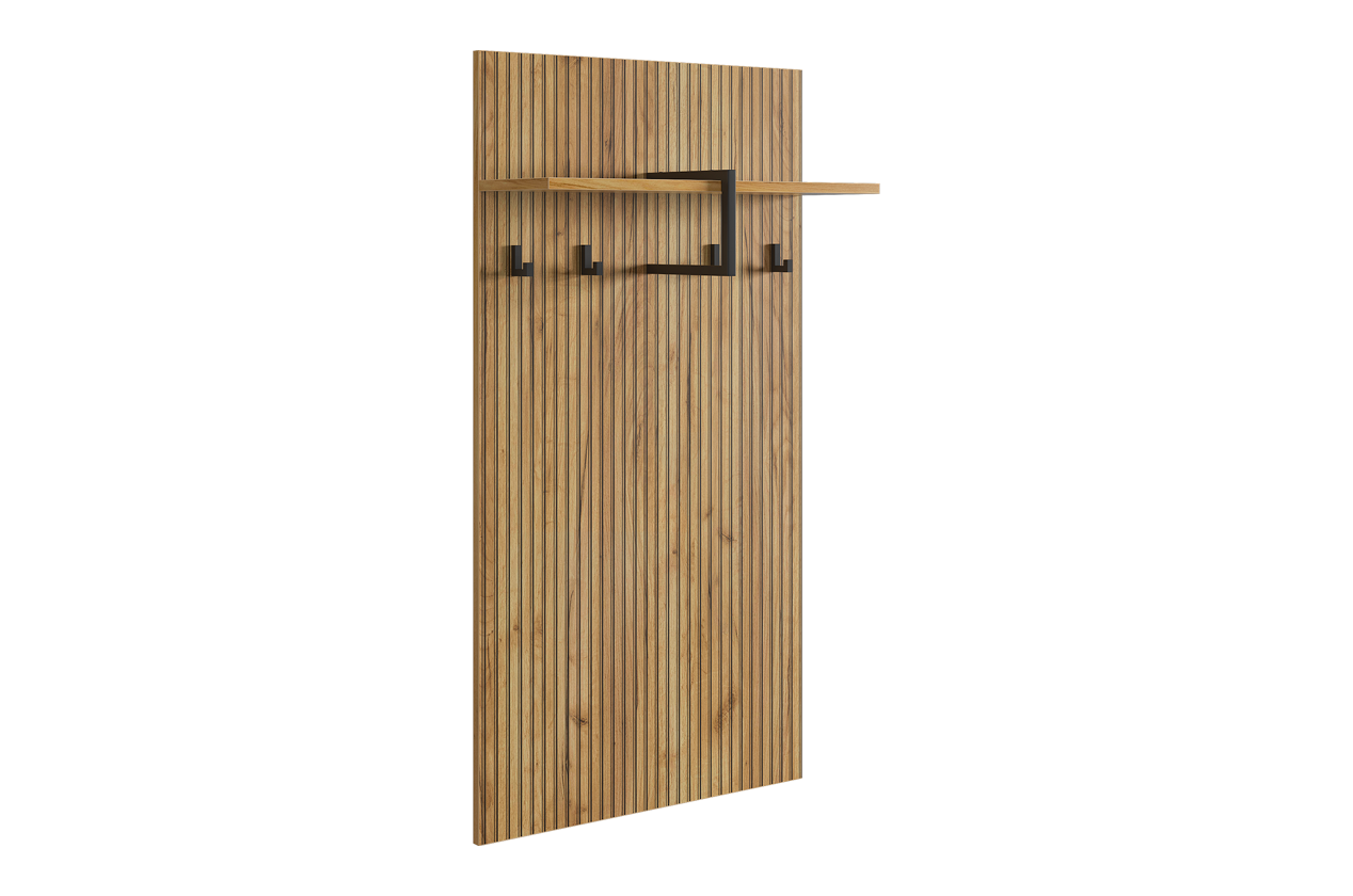 Принт, имитирующий вертикальную фрезеровку придает вешалке уникальный и современный вид, добавляя текстуру и глубину. Материал вешалки – ЛДСП, что обеспечивает прочность и долговечность, а также легкость в уходе.